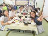 お土産タイムの後、夕食を食べました。 子どもたちは、どきどきしながら夕食を食べ...