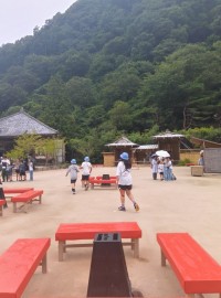 いろは坂を降り、日光江戸村に到着しました。薄曇りで蒸し暑いですが、元気にまわって...