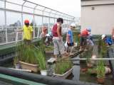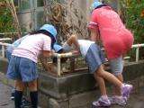屋上のビオトープで休み時間を満喫!池に入って生き物をさがしています。 つかまえた...