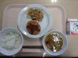 【今日のこんだて】 牛乳 ソースカツ丼 打豆汁 巨峰 【食材の産地】 米...