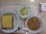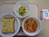 【今日のこんだて】 牛乳 フレンチトースト ビーンズシチュー フレンチサラダ ...
