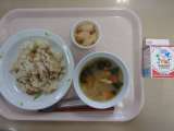 【今日のこんだて】 牛乳 かやくご飯 里芋汁 月見団子 【食材の産地】 ...