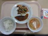 【今日のこんだて】 牛乳 ホイコーロー丼 わかめスープ フルーツジュレ 【...