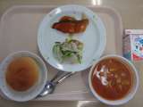 【今日のこんだて】 牛乳 スパゲティポモドーロ ポトフ りんご 【食材の産...