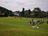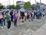 村めぐりに出発しました。朝の小雨も上がり、ハイキングにはぴったりの爽やかな天候で...