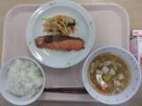 【今日のこんだて】 牛乳 ごはん 魚の塩麹焼き 和風サラダ さつま汁 【食...