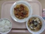 【今日のこんだて】 牛乳 ごはん じゃが芋と鶏肉の煮物 みそしる 【食材の...