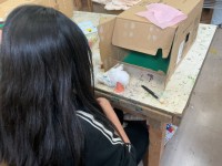 5年生の図工です。段ボールに穴を開けて、そこからのぞいて楽しい景色を様々な材料で作っています。日常の生活では「のぞく」行為は怒られることが多いですが、今日は「のぞく」を大事にしようと伝えました。5年生...