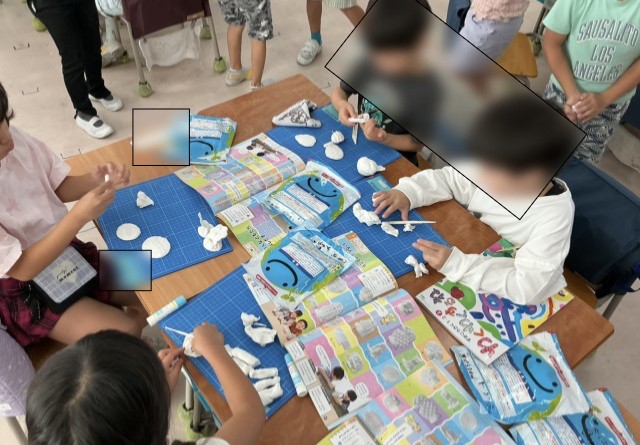 作品が完成すると、笑った顔、驚いた顔、悲しい顔、怒った顔など様々な顔の友達同士のたくさんの話し声が聞こえてきました。