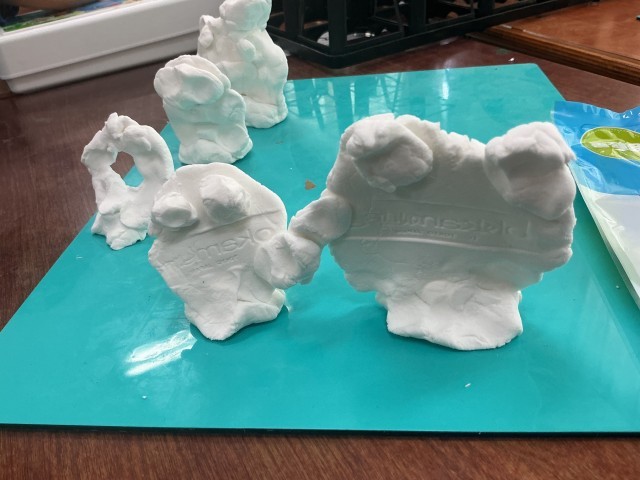 身近なでこぼこに紙粘土を押し当てると、色々な模様が浮かび上がってきました。