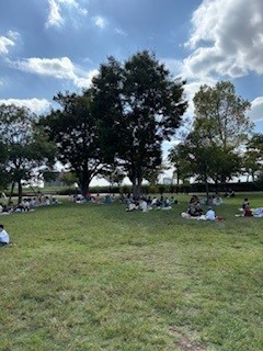 みんなとてもおいしそうに食べています。みんな笑顔です。お弁当の準備、ありがとうございました。