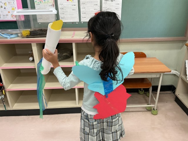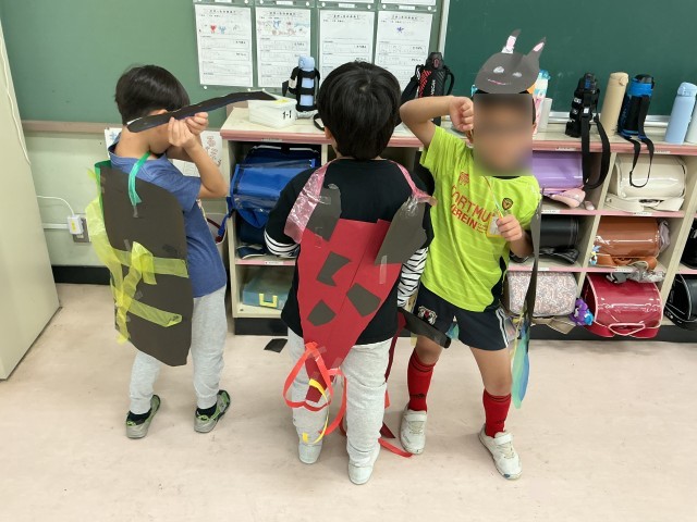 1年生が図工の授業で「つくってへんしん」の学習をしました。