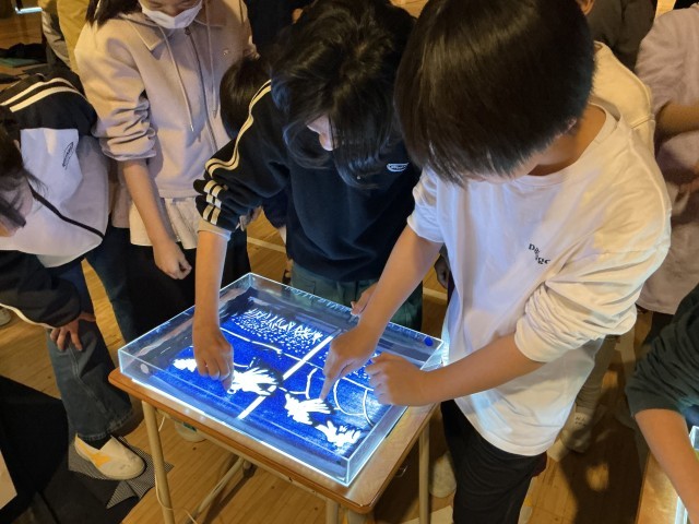 笑顔と学びの体験プロジェクトの一環で、サンドアート体験をしました。