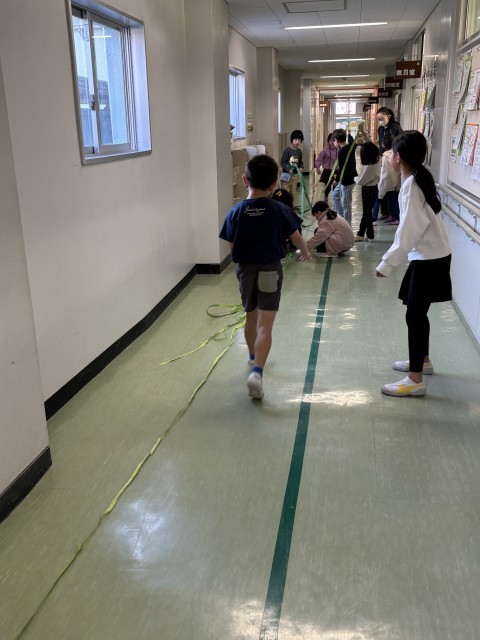 最終的には4階にある図工室の中だけにとどまらず、1階の廊下まで、長〜く伸ばしていきました。