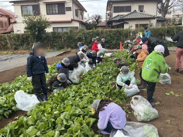 畑の方からのお話しをしっかりと聞き、小松菜の気持ちを考えて丁寧に収穫しました。