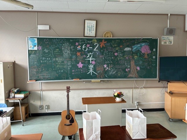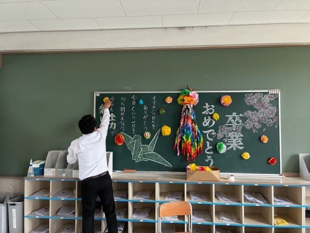 卒業式の朝を迎えました。担任は、子どもたちの巣立ちを祝う気持ち、子どもたちへの感謝の気持ち、これからの人生へのエールを黒板に記していました。子どもたちを思う気持ちが表れた黒板が完成しました。今日の卒業式も素晴らしいものになると確信しました。