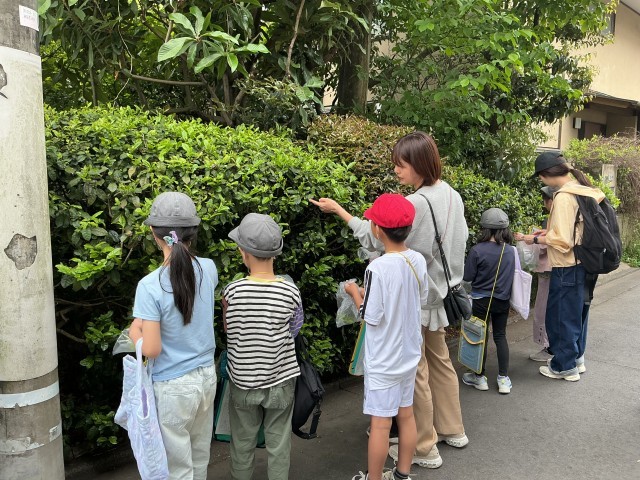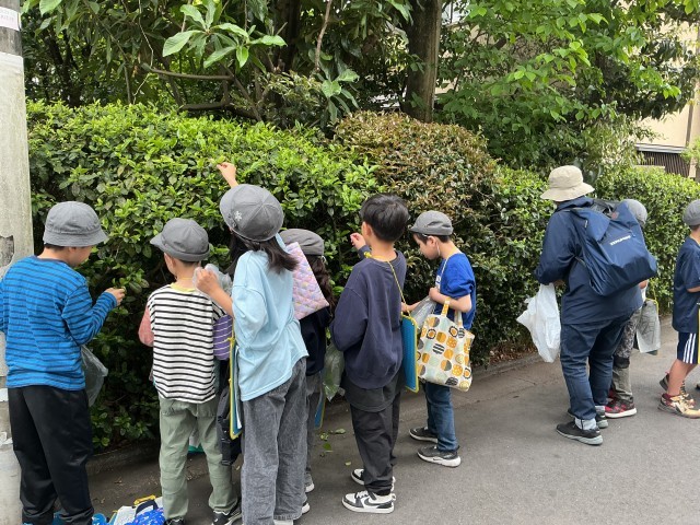 地域フィールドワークでは、学校の周りの土地の使われ方や交通の様子を実際に歩いて調べました。