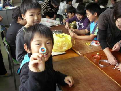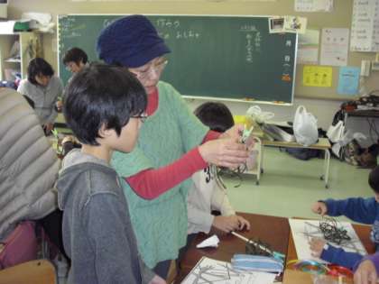 「ひもをあんで作ろう こまとへびのおもちゃ」です。
