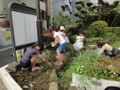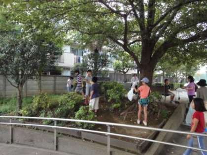 夏休みに入りました。いつも遊んでいる公園や蛇崩川緑道をきれいにしました。多くの保護者の方々も出ていただきました。きれいな公園で、この夏休み、たくさん遊べます。