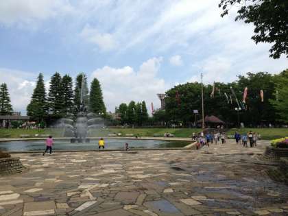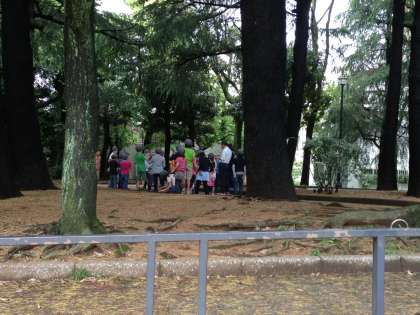 色んなゲームの場所まで6年生のリーダーのもと、広い公園をまわっています。