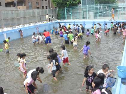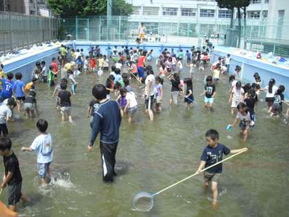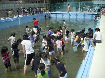 プールに子どもたちの歓声が上がりました。
