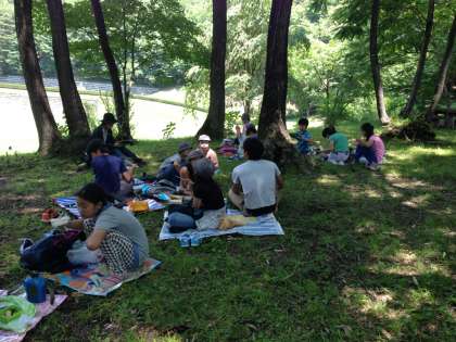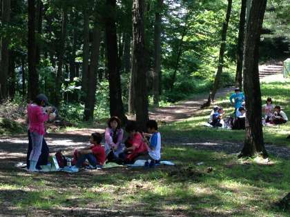 天狗山公園、自然の中での昼食、アリがきたとキャーキャーいいながらの楽しい昼食タイムです。
