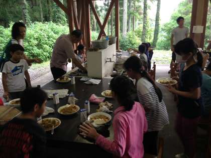 自分たちが協力して作ったカレーライス、美味しくいただきます。