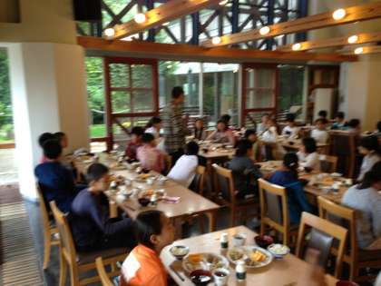 昨夜は雨でしたが、早朝から晴れました。今日は雨乞山登山です。たくさん食べて登山に備えます。