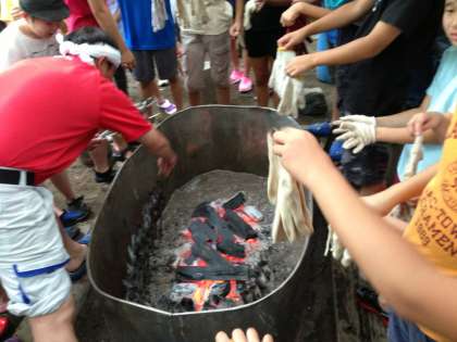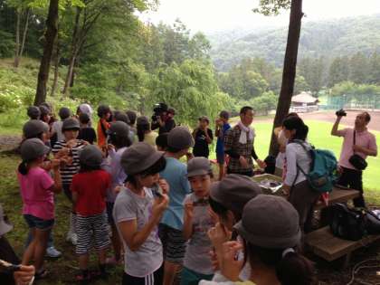 自分たちがつかみとったマスを豪快にかぶりつき、美味しいマスを食しました。
