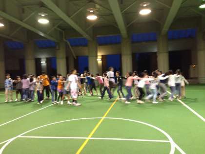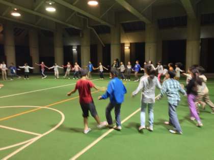 みんなが楽しみにしていたキャンプファイヤー、残念なことに雨が降って来たので室内体育館でキャンドルサービスにしました。