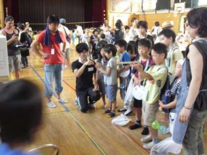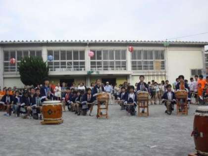 台風が通過して、上天気の中でこども夏まつりができました。おやつやジュースをもらったり、ゲームやワークショップで楽しんだり、最後は56年生の三茶太鼓で終わりました。