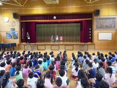 式では、2年生の代表児童が1学期で頑張ってきたことを堂々と述べました。