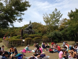 源氏山頼朝像の前で、お弁当です。楽しくゆっくりと食べました。