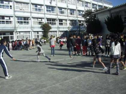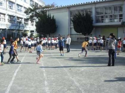 2学期になってから、体育朝会で長なわとびを行っています。今日の長なわとびは、6年生が各学級に入り、より速く長く跳べるように担任の先生といっしょになって教えてくれました。やさしく跳び方を下学年に教えていました。前よりちょっぴり上達しました。