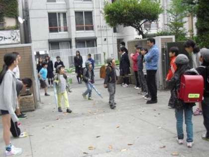 11月11日、駒沢中学校の生徒が朝のあいさつ運動に来てくれました。三茶小の児童会役員いっしょに大きな声でおはようのあいさつをかけてもらいました。中学生のお兄さんお姉さんに子どもたちはびっくり、笑顔でおはようございますとあいさつを返していました。