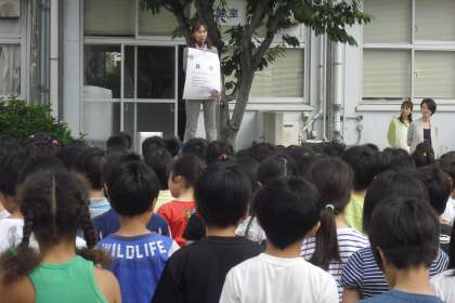 児童朝会での校長講話は、世田谷区教育委員会「人格の完成をめざして」6月のテーマである「責任」についての話でした。教室の窓はクラスの係の人が、体育館の窓は体育委員会の人が開けてくれました。朝から仕事をして、その責任をきちんと果たしていますね。皆さんはクラスでそれぞれの仕事を頑張っていることと思います。5・6年生の人には、委員会や行事の仕事など学校全体に関わる大きな責任があります。皆さん一人一人がしっかり自分の責任を果たす子どもに育ってほしいと願っています。