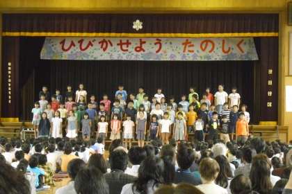 本日5時間目に、もみの木発表会を実施しました。各学年児童による群読の発表です。