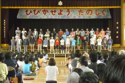 運動会で身に付けた“友達と協力して取り組む力”を生かして、どの学年も心を一つにしたすばらしい群読を披露しました。