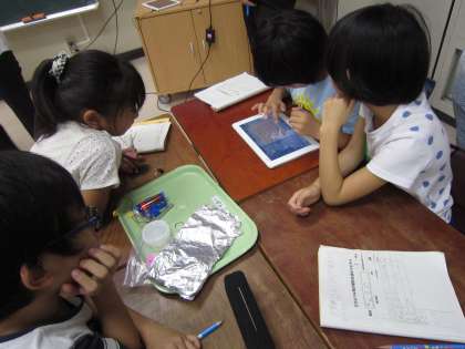 「どのようなものが電気を通すのだろう」をテーマに、色々なものを持ち寄り、実験しました。タブレットを使用して、結果をまとめ、電気を通すものの特徴を考えました。