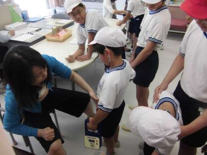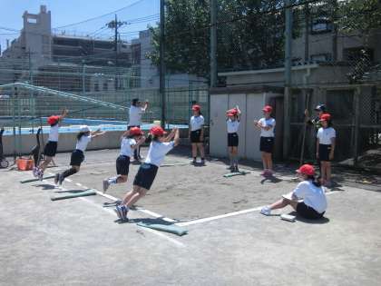 6月2日、スポーツテストを実施しました。本校では、1年生と6年生、3年生と5年生、2年生と4年生が一緒に行い、上級生が下級生の計測のお手伝などお世話をしています。ソフトボール投げ、立ち幅跳び、反復横跳び、上体起こし、長座体前屈、握力を計測します。50m走と20mシャトルランは、別途学年やクラスで行います。子どもたちは、緊張しながらも、自分のもてる力を出し切って、一生懸命取り組んでいました。