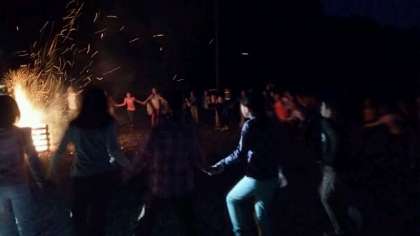 星は見えないけれど、熱い厚い団結の火が天を焦がす。大盛り上がりのキャンプファイア〜!!