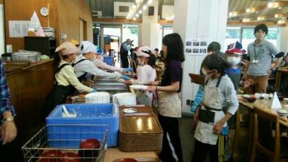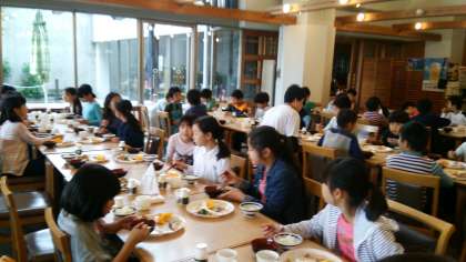 2日目の朝、食事係さんは初めての仕事にまごまごしながらも、美味しい朝御飯、いただきまーす♪