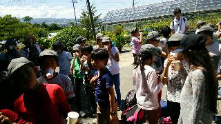 宮田農園でりんごの実の育て方をうかがった後は…、いよいよりんごジュースをいっただっきまーす!