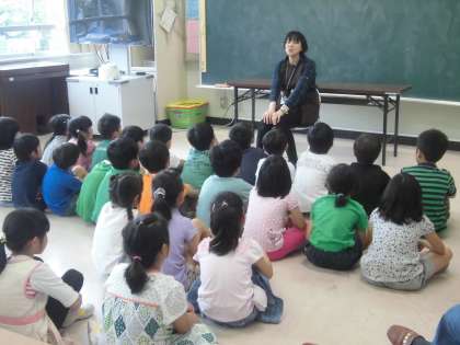 6月9日(木)3・4校時に、世田谷区立中央図書館の職員の皆様にお越しいただき、2年生対象のお話会を行いました。エプロンシアター、大型絵本の読み聞かせ、ゆかた姿での落語など、盛りだくさんの内容で、子どもたちは本の世界に引き込まれていました。