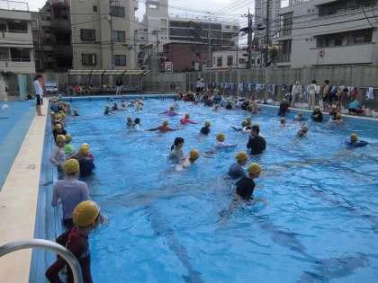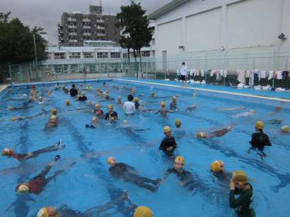 7月20日(水)、1・2校時に5・6年生が着衣泳の学習を行いました。服を着た状態で泳いだ子どもたちは、「重たい!」「動きづらい!」「泳げない!」と経験したことのない体験に戸惑いを見せていました。足が底につかなかったら、大きな波が来たら・・・と想像をふくらませ、緊張感をもって取り組んでいました。ビニール袋やペットボトルにつかまるといい、あお向けの方が浮きやすい、ジタバタせずに助けを静かに待つなど、知恵を出し合っていました。