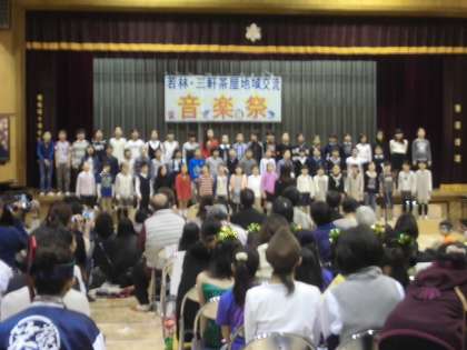 11月12日(土)の午後、若林・三軒茶屋地域交流音楽祭が開催されました。青少年若林地区委員会主催、若林地区社会福祉協議会協賛、若林まちづくりセンター、PTA、地域の皆様のご協力のもと、盛大に行われました。出演した団体の皆さんの生き生きした素晴らしい演技に大きな拍手が送られていました。子どもたちが地域で育てていただいていることを改めて実感した交流音楽祭でした。