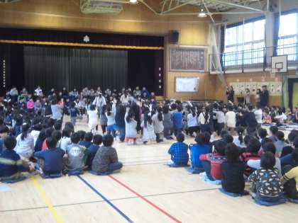 3月2日(木)3・4校時に、6年生を送る会を行いました。代表委員会が中心となって、学年ごとに工夫した出し物を披露し、6年生に感謝の気持ちを表しました。校長先生からは、6年生が入学してから卒業を迎えるまでに伸びた身長をテープの長さに表し、示されました。その長さにみんなびっくり!みんな大きくなりましたね!