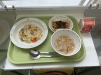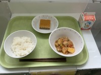ぶたにく:埼玉県、とりにく:徳島県、たまご:群馬県、じゃこ:鹿児島県、たまねぎ:北海道、にんじん:北海道、キャベツ:群馬県、もやし:栃木県、にら:北海道、ねぎ:青森県