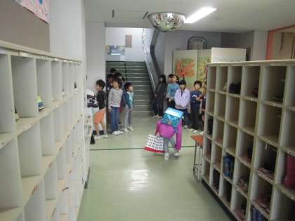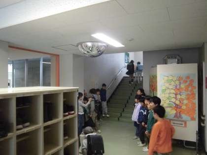 今朝は雨が降っていたので、校舎内の階段前であいさつをしました。子供たちの元気なあいさつの声で、今週もがんばろうという気持ちになりました。