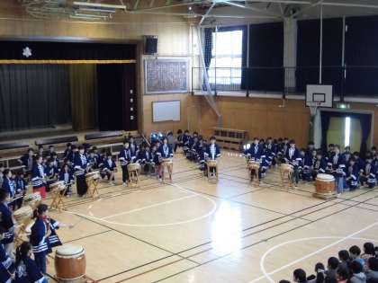 開会式は、開校にちなんだクイズや5・6年生による三茶太鼓の演奏がありました。素晴らしい演奏に下級生たちは、「かっこいい」、「早く習いたい」と、言っていました。